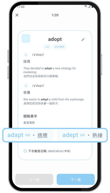 根據遺忘曲線,自動安排每日複習,讓學習更有效率。