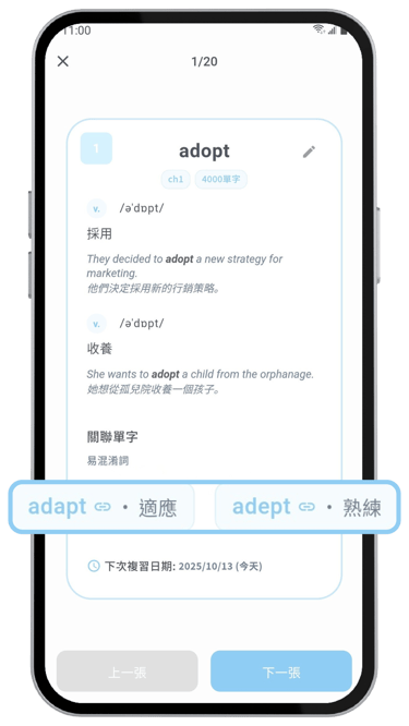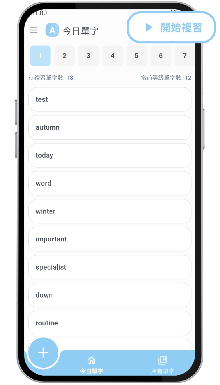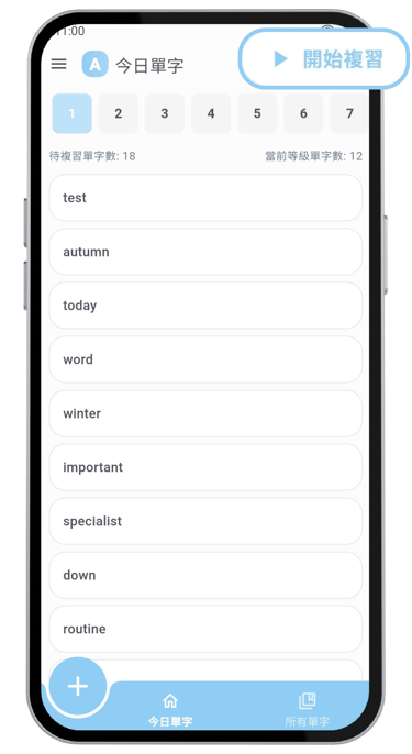一鍵複習今日單字,點擊『開始複習』開始你的每日練習。